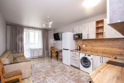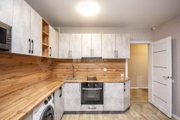 Квартира располагает просторной гостиной, объединенной с кухней, создавая идеальное пространство для семейных вечеров и приема гостей. Кухня оборудована всем необходимым: современная варочная панель с сенсорным управлением, духовой шкаф с функцией конвекции и самоочистки, вместительный холодильник с зоной свежести и генератором льда. Встроенная посудомоечная машина освобождает от рутинной работы, позволяя наслаждаться временем, проведенным с семьей и друзьями.