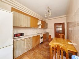 Просторная четырехкомнатная квартира 93 м² с качественным ремонтом расположена на 3 этаже кирпичного дома в самом центре города. Планировка предлагает четыре изолированные комнаты, обеспечивающие приватность и комфорт для семьи, просторную кухню 15 м², раздельный санузел и балкон. В помещении установлена вся необходимая бытовая техника: холодильник, плита, микроволновая печь, стиральная машина и водонагреватель, а также мебель, включая кухонный гарнитур и системы для хранения вещей. Квартира подключена к проводному интернету и телевидению. Главное преимущество — исключительная локация: в пяти минутах ходьбы станция метро "Площадь Ленина", рядом находятся парк и reputable учебные заведения.