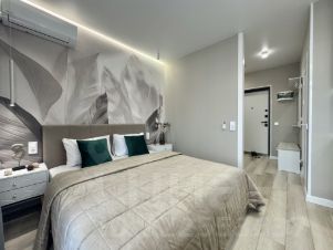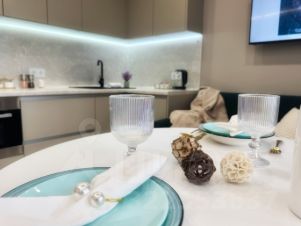 * техника: Smart-TV, безлимитный Wi-Fi, холодильник, СВЧ, варочная панель, духовка, электрический чайник, стиральная машина, водонагреватель, фен, утюг, кондиционер