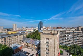 Окна выходят на две стороны: на сторону площади Ленина и на сторону Галереи — двойная ориентация, минимум шума с улицы.