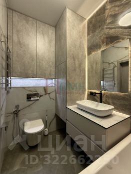 Просторная кухня-гостиная с кондиционером. Смарт телевизор 60 дюймов. Диван раскладывается секционно. На кухне вся техника встроенная: посудомоечная машина, индукционная плита, фильтр для воды, подсветка кухонной зоны. Различное световое зонирование. Огромное количество мест для хранения. Две панорамные видовые лоджии: одна в гостиной с видом во двор, вторая в спальне с видом на город и ЖК Мылзавод. Два санузла: один с ванной, один с душевой кабиной. Гигиенический душ, водонагреватель. Третья комната сделана под кабинет или детскую. Установлена сейчас там так же кровать-тахта.