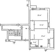 Трёхкомнатная-студия (77 кв.м., три большие комнаты: кухня-гостиная, спальная, детская).