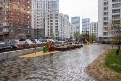 Двор: детская площадка, променад.