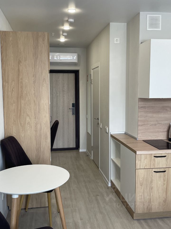 Сдается уютная студия с евроремонтом в современном доме. Площадь квартиры составляет 28 кв. м, расположена на 9 этаже 25-этажного здания. Дом находится в пешей доступности от метро — всего 15 минут пешком.