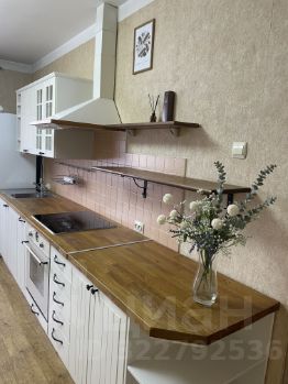 Кухонный гарнитур, стол, тумба из натурального дерева. Вместительный шкаф-купе с выдвижными ящиками и встроенной подсветкой позволяет разместить все нужные для обихода вещи.
