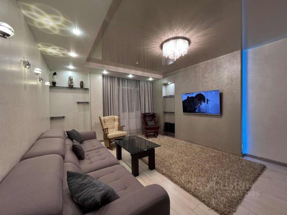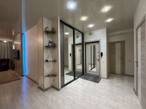 В квартире выполнен дизайнерский ремонт, присутствует необходимая мебель и техника. Из техники: 3 телевизора, холодильник, варочная поверхность, духовой шкаф, чайник, вытяжка, посудомоечная машина. Из мебели: кухонный гарнитур, 3 больших шкафа-купе, кровати, огромный диван, рабочий стол (кресел, ковра и журнального столика не будет)