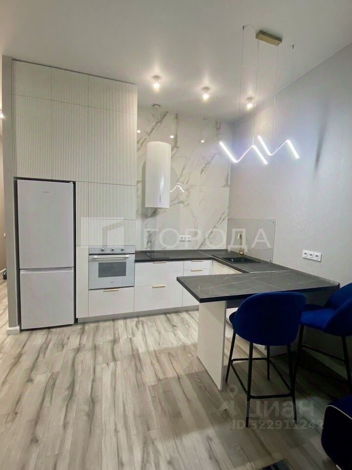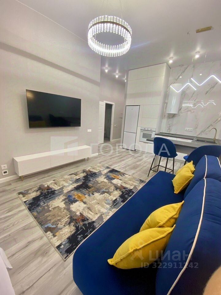 Квартира в отличном состоянии, имеется все необходимое для комфортного проживания мебель и техника: кондиционер, холодильник, плита и духовой шкаф, микроволновая печь, стиральная машина, посудомоечная машина, водонагреватель, телевизор, диван, кровать, шкаф и комод.