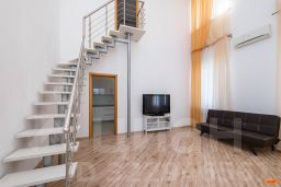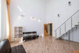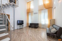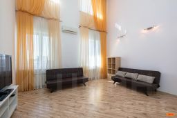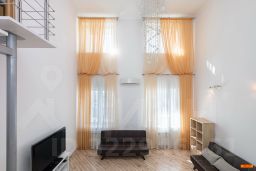 Эргономичная и максимально удобная планировка, с четко выраженными функциональными зонами и продуманными визуальными взаимосвязями: просторный зал, состоящий из диванной зоны с телевизором и выделенной зоной кухни с выходом на большую лоджию, сделаны максимально общественными, для активного время препровождения днём, приготовления и приёма еды, разнообразного отдыха и приёма гостей. Санузел с душевой кабиной и общий холл в зоне прихожей. Приватная спальная зона, состоящая из двух спален, с примыкающим к ним санузлом, с ванной. Дополнительно — третья спальня на антресольном уровне в гостиной. Высота потолков от 3 до 5 метров.