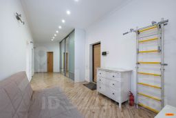 Дизайн в светлой цветовой гамме. Полная комплектация квартиры мебелью и бытовой техникой. Тёплый пол, индивидуальное кондиционирование. Много мест хранения.