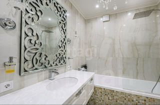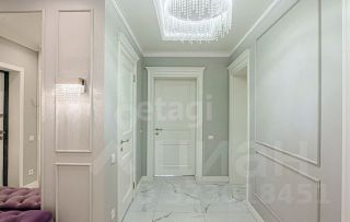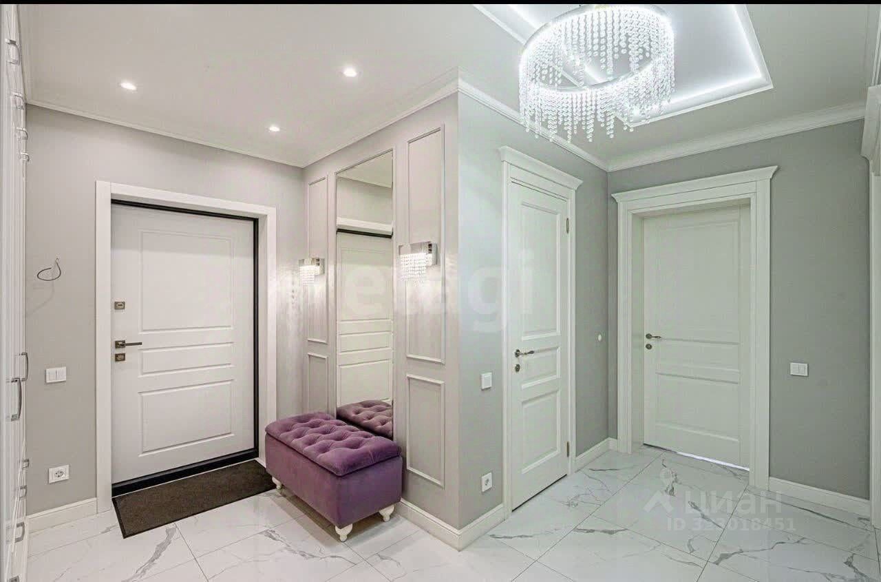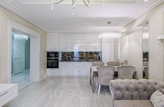 Квартира оборудована всем необходимым для комфортного проживания: кухонный гарнитур со встроенной техникой, чайник, стиральная машина, диван, гардеробная комната, стол со стульями.