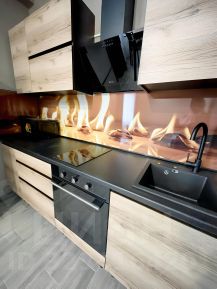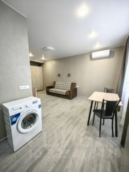 В квартире сделан евроремонт. Просторная зона кухни и жилого пространства объединены, что создает ощущение простора и света. В наличии вся необходимая мебель: на кухне и в комнате. Из техники есть кондиционер, холодильник, телевизор и стиральная машина, микроволновая печь. чайник, варочная панель, духовой шкаф. Ванная комната оснащена душевой кабиной и совмещена с санузлом.