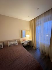 Из окон квартиры открывается прекрасный вид на город, витражное остекление с тонировкой защищает в жаркие солнечные дни от излишней жары.