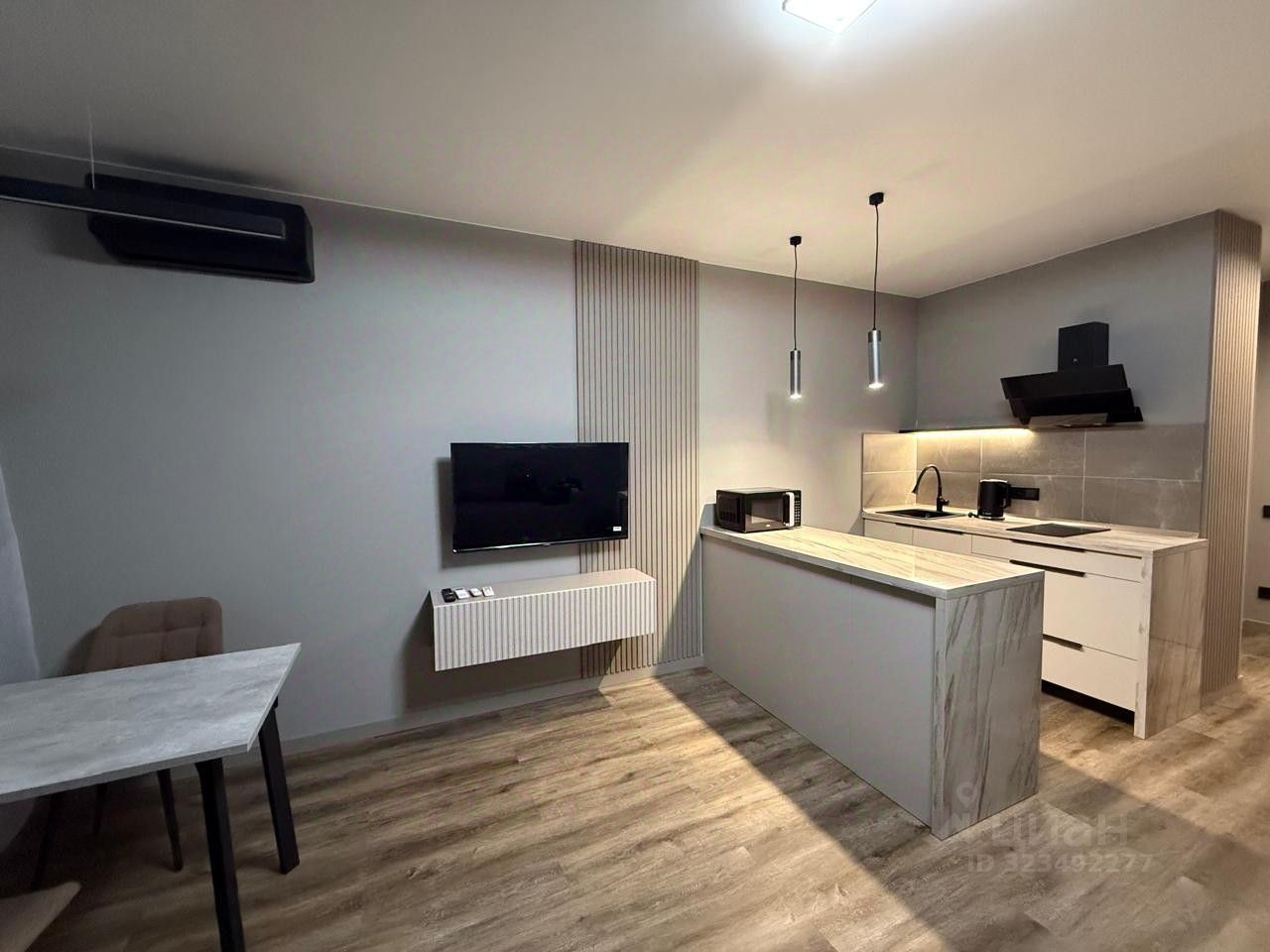 В квартире есть всё необходимое для комфортного проживания: современная мебель на кухне и в комнате, а также вся необходимая бытовая техника. Просторная ванная комната выполнена в современном стиле. Вместительная гардеробная.