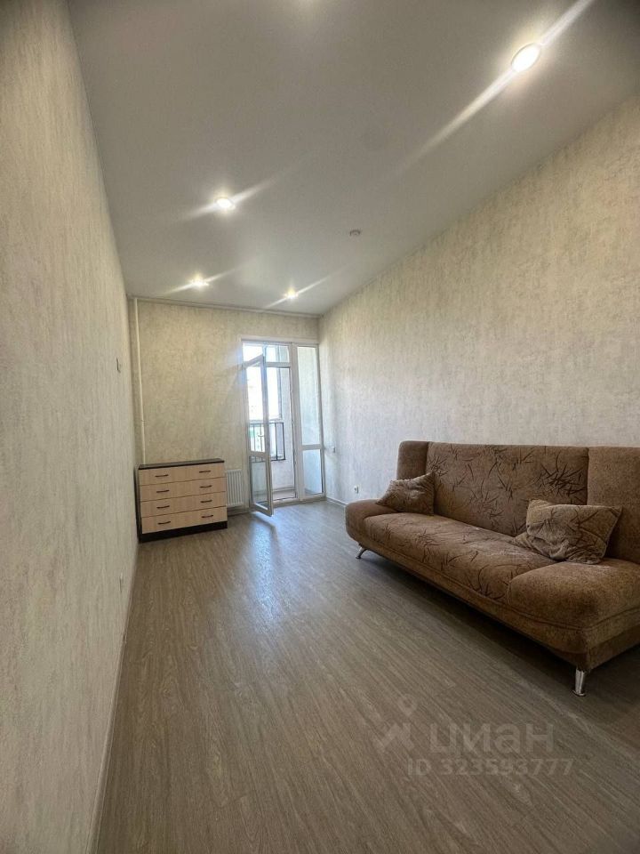 Жилая комната просторная, с диваном и комодом (есть выход на лоджию).