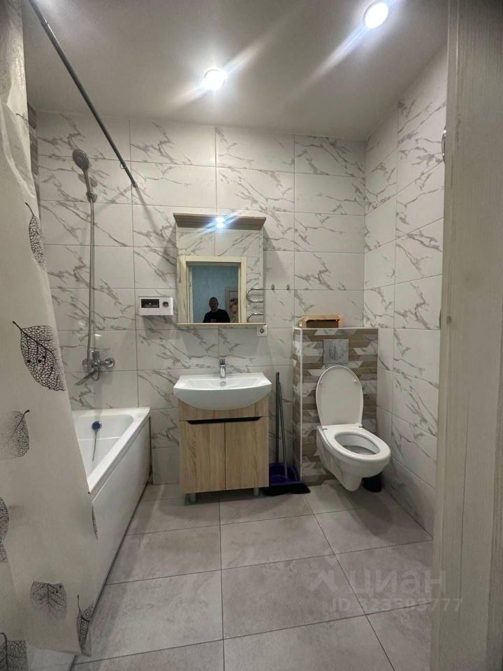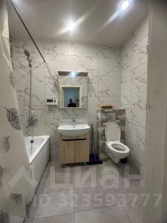 Ванная комната с новой сантехникой и стильной отделкой (комбинация мраморной и геометрической плитки).