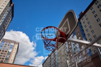 В доме просторный, современный холл, 4 лифта на этаже. В комплексе есть подземный паркинг и благоустроенный двор. Территория огорожена и находится под видеонаблюдением, в доме сидит консьерж.