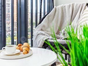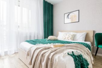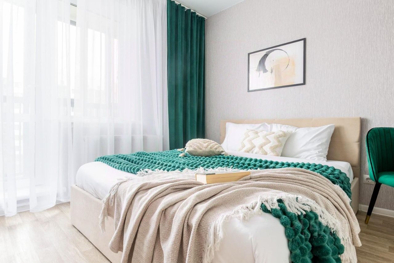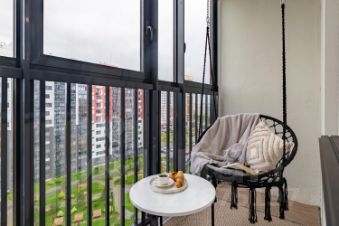 Изумрудная студия с гамаком на балконе в новом доме в экологически чистом районе.