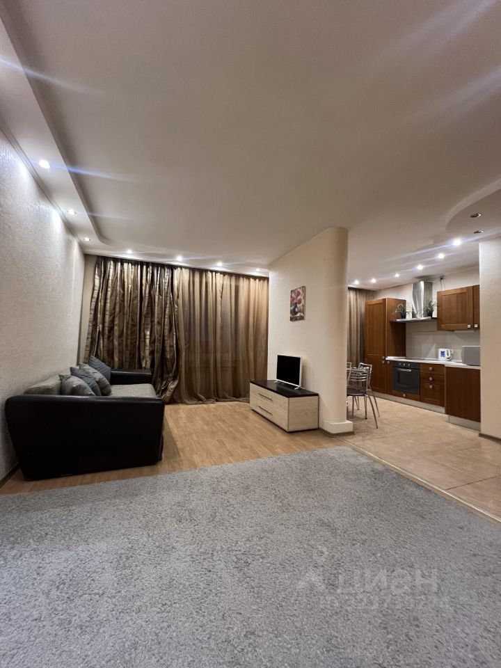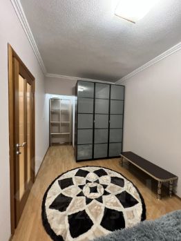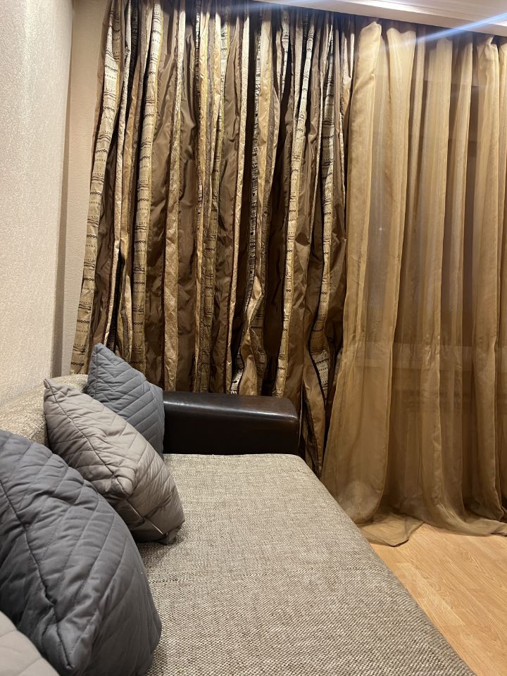 В квартире сделан косметический ремонт. Уютная кухня площадью 15 кв. м оснащена необходимой мебелью и техникой: холодильник и стиральная машина. В гостиной и спальне также есть мебель. Высота потолков составляет 2.5 метра, окна выходят на улицу. Санузел совмещённый, оборудован ванной. Дополнительное удобство — наличие лоджии.