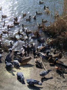 За домом есть пруд с утками (большой)
