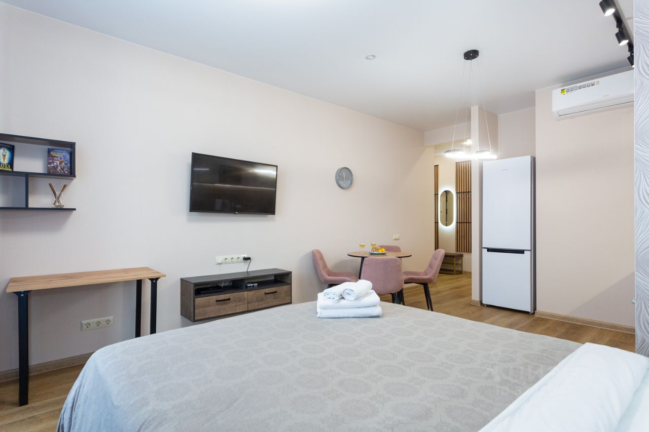 Уютная студия для 2 гостей — идеально для пар, командировок, коротких поездок.