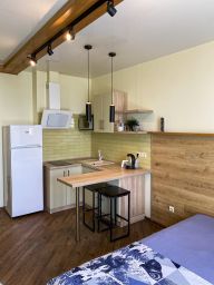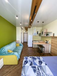 Особенность апартаментов заключается в сочетании комфортного оснащения и удобного местоположения. Все студии оформлены в современном стиле и идеально подходят для кратковременного проживания, предлагая гостям уют и спокойствие в центре города.