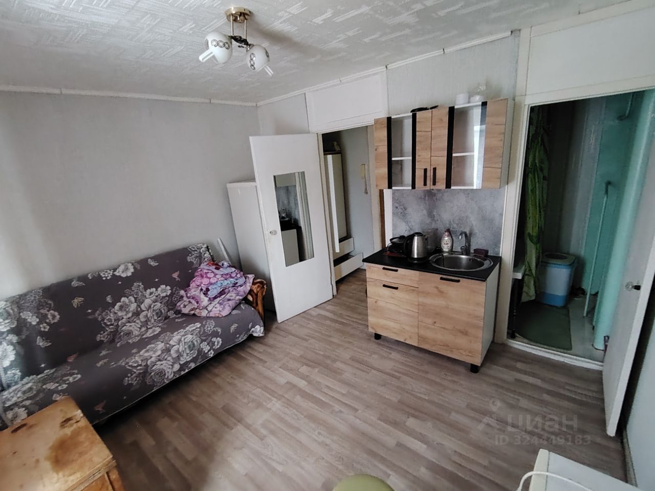 В квартире сделан косметический ремонт, поэтому всё выглядит свежо и аккуратно. Жилая площадь составляет 12 квадратных метров, а кухня — 4 квадратных метра. Здесь есть необходимая мебель как в комнате, так и на кухне, а также холодильник. Ванная комната оборудована полноценной ванной. Окна выходят на улицу, поэтому в квартире много света.