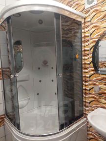 В ванной комнате имеется душевая кабина, а также стиральная машина. все фото реальные .