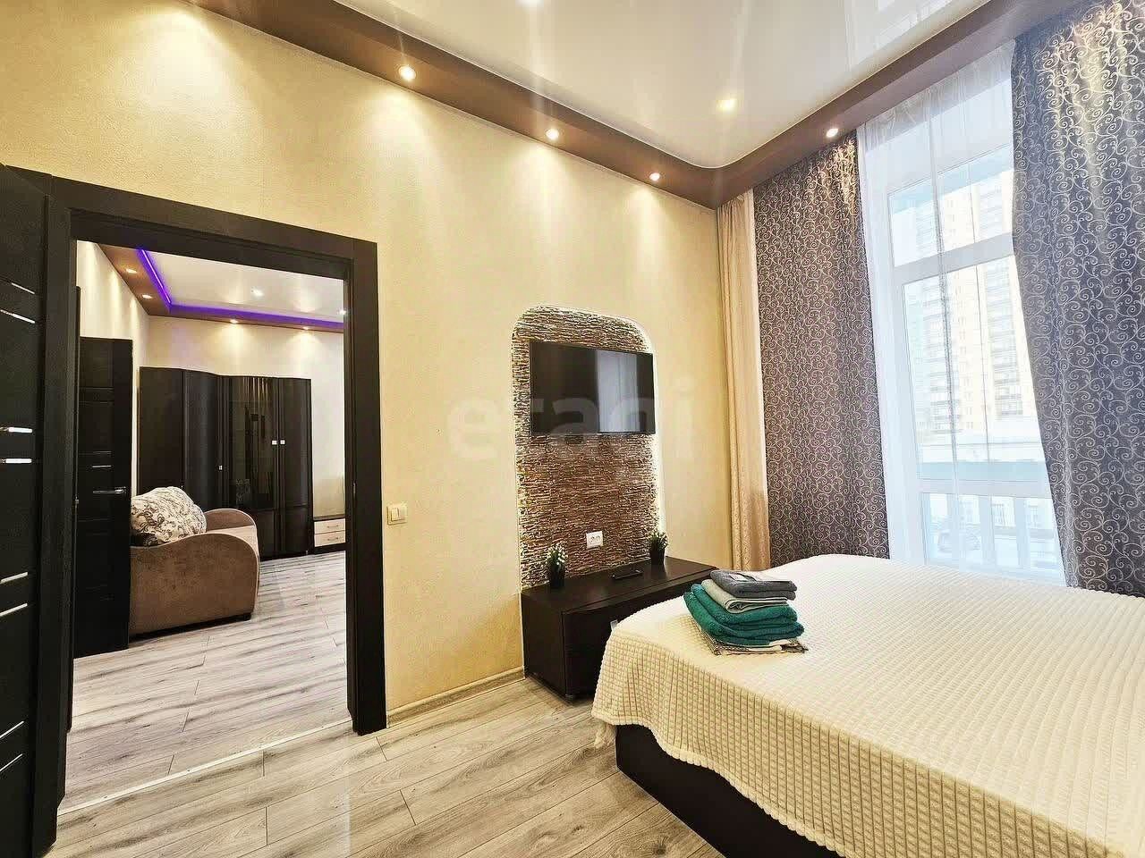 - *Планировка:* 2 спальни (двуспальные кровати) + просторный зал (диваны).