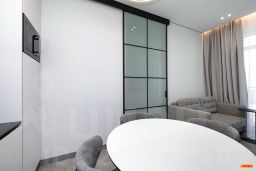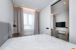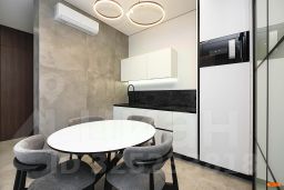 Авторский дизайн с использованием дорогих материалов и изысканная мебель, создают атмосферу респектабельного комфорта. Эргономичная и максимально удобная планировка, с четко выраженными функциональными зонами и продуманными визуальными взаимосвязями: просторный зал, состоящий из диванной зоны и стильной кухни, с выходом на большую лоджию. Приватная спальная зона с двуспальной кроватью и вместительным шкафом. Французское остекление — окна в пол, всегда много солнца и воздуха. Санузел оборудован качественной европейской сантехникой, установлена душевая кабина. Общий холл в зоне прихожей. Полная комплектация квартиры мебелью и бытовой техникой. Много мест хранения. Кондиционирование.