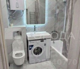 Санузел совмещенный, выполнен в светлых тонах с современной сантехникой. Лоджия застеклена и утеплена, что позволяет использовать ее как дополнительное пространство.