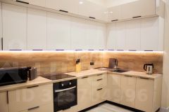 Кухонная зона: оснащена современной техникой холодильником, конвекционной плитой, духовым шкафом, микроволновой печью и эффективной вытяжкой.
