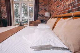 Номерной фонд включает в себя 42 комфортабельных номера, выполненных в спокойном европейском стиле. Для тех, кто предпочитает отдых в "ЭКО"-формате, предлагается остановиться в одном из деревянных благоустроенных кедровых коттеджей, это прекрасная альтернатива загородному дому. Каждый из коттеджей построен из экологически чистых материалов и хранит запах натурального дерева. Общая вместимость комплекса - 140 человек.