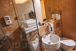 В изысканной ванной комнате имеются все необходимые средства гигиены, а также банные халаты, тапочки и фен.