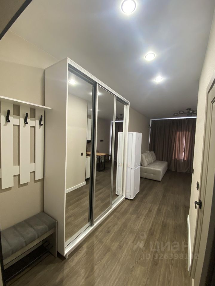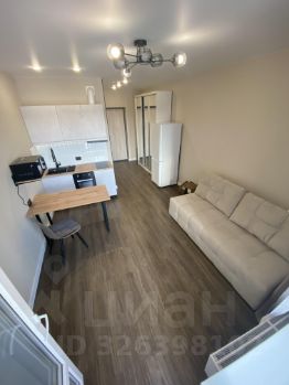 Светлая студия с качественной отделкой. Пространство организовано рационально: есть отдельная кухонная зона и гармонично совмещённая гостиная-спальня.