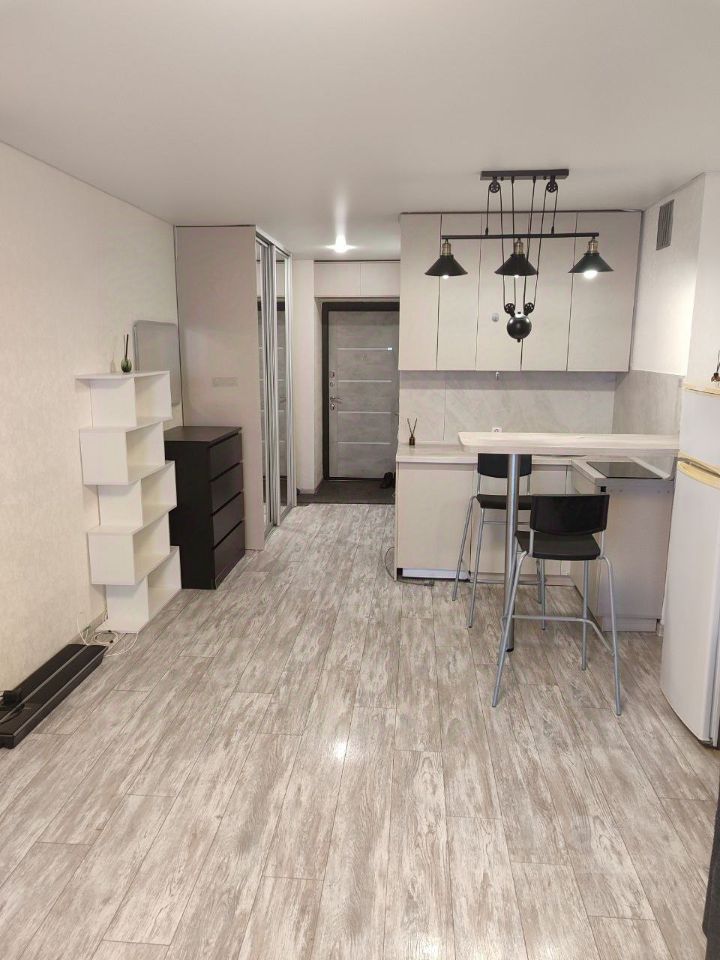 В квартире сделан качественный евроремонт. Пространство обставлено мебелью, есть все необходимое для комфортной жизни: современная кухня и уютная зона отдыха. В ванной комнате установлена душевая кабина. Из техники — холодильник и стиральная машина. Также имеется лоджия, где можно наслаждаться свежим воздухом.