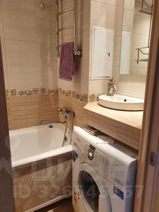 Современный санузел оснащен душевой кабиной, унитазом и раковиной. Внутри установлены стиральная машина и сушилка, что делает бытовые процессы более удобными.