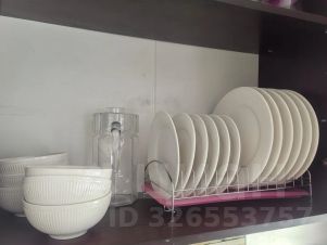 На кухне: фильтр для воды, плита, чайник, микроволновая печь, холодильник, кофемашина, обеденный стол и стулья, вся необходимая посуда.