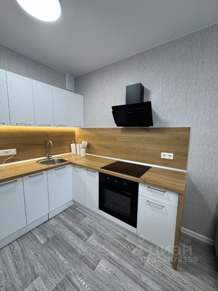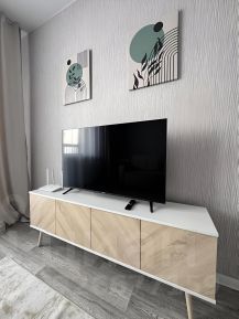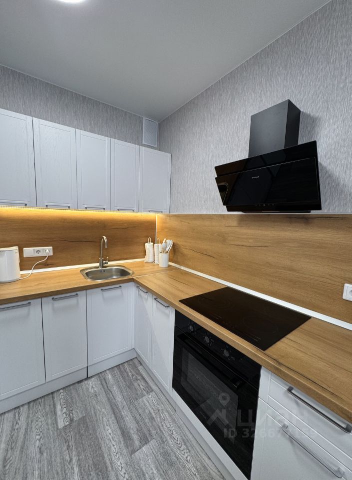 В квартире сделан современный ремонт, установлена вся необходимая техника: холодильник, электрическая печь, духовой шкаф, вытяжка, телевизор и стиральная машина.