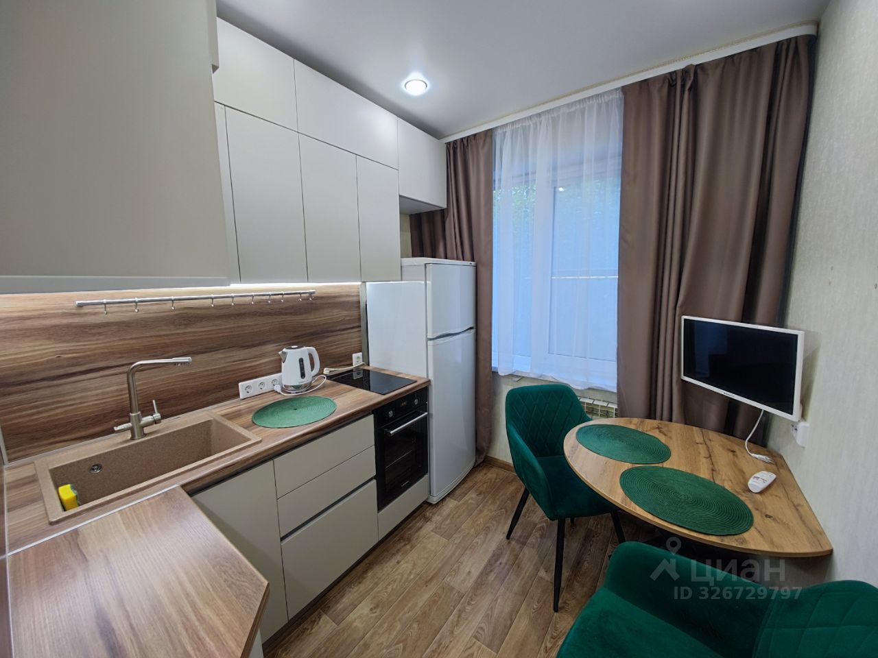 Квартира полностью готова для комфортного проживания. Здесь есть вся необходимая мебель как на кухне, так и в комнате. Совмещенный санузел оборудован ванной. Из техники в вашем распоряжении кондиционер, холодильник, телевизор и стиральная машина.