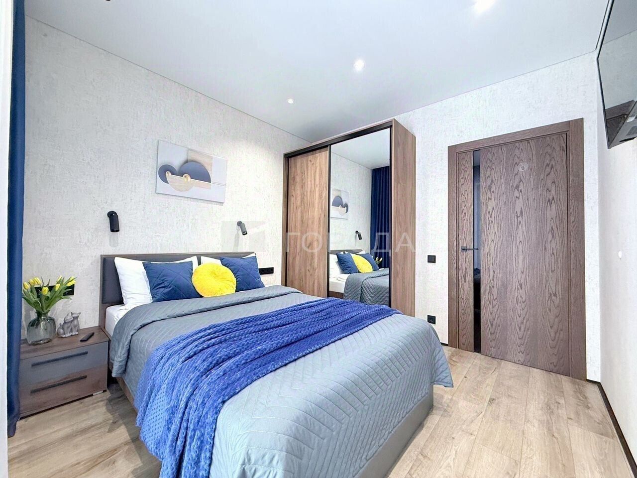 В квартире 2+2+1 спальных места (двухспальная кровать с ортопедическим матрасом (140см) + двухспальный комфортный диван-кровать + кресло кровать).