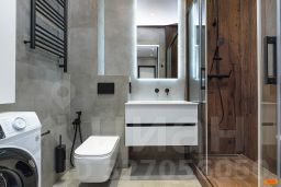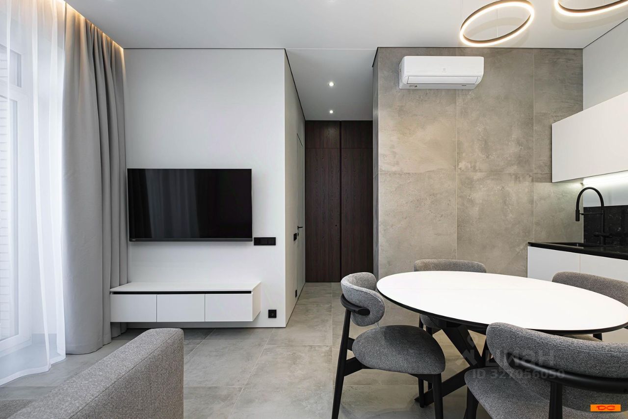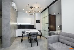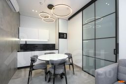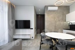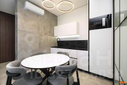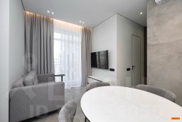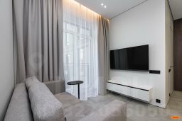 Авторский дизайн с использованием дорогих материалов и изысканная мебель, создают атмосферу респектабельного комфорта. Эргономичная и максимально удобная планировка, с четко выраженными функциональными зонами и продуманными визуальными взаимосвязями: просторный зал, состоящий из диванной зоны и стильной кухни, с выходом на большую лоджию. Приватная спальная зона с двуспальной кроватью и вместительным шкафом. Французское остекление — окна в пол, всегда много солнца и воздуха. Санузел оборудован качественной европейской сантехникой, установлена душевая кабина. Общий холл в зоне прихожей. Полная комплектация квартиры мебелью и бытовой техникой. Много мест хранения. Кондиционирование.