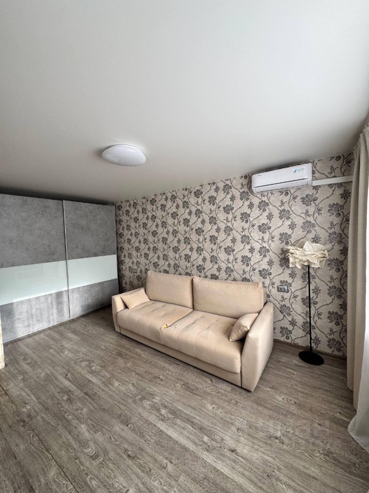 В квартире сделан косметический ремонт. Пространство организовано так, что в комнате есть вся необходимая мебель для комфортного проживания. Квартира оснащена необходимой техникой: кондиционером, холодильником и стиральной машиной, микроволновой печью и грилем. Санузел совмещённый, в ванной комнате установлена ванна. Окна выходят во двор, что обеспечивает тишину и уют.