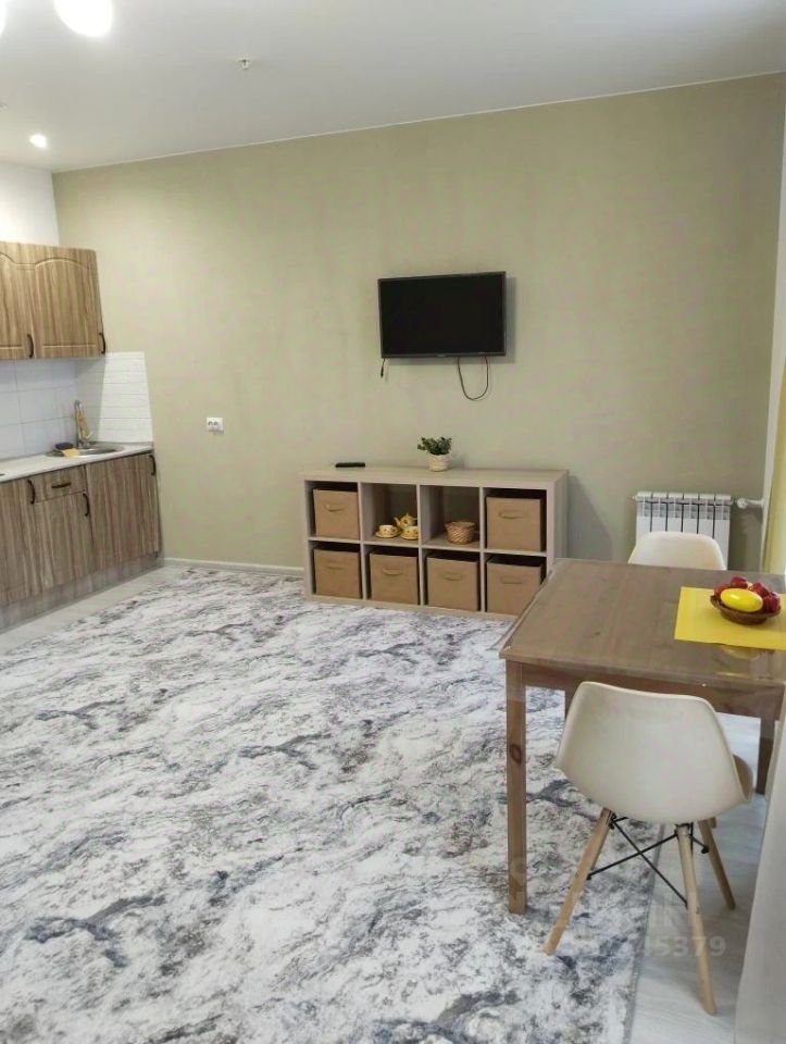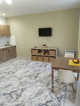 Квартира выполнена в современном стиле. Просторная и светлая студия, окна которой выходят во двор, обставлена необходимой мебелью. Кухня оборудована всем необходимым: холодильник, телевизор и стиральная машина. Ванная комната оснащена полноценной ванной, что добавляет удобства и уюта.