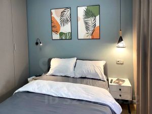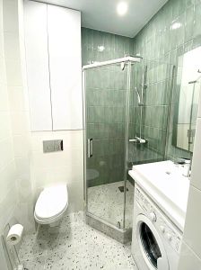 На кухне установлена современная мебель и полноценный набор техники: холодильник, посудомоечная машина и стиральная машина. В комнате есть удобная мебель для отдыха и работы, а также кондиционер и телевизор. Ванная комната оборудована душевой кабиной. Интернет подключен, поэтому можно без проблем работать или учиться из дома.
