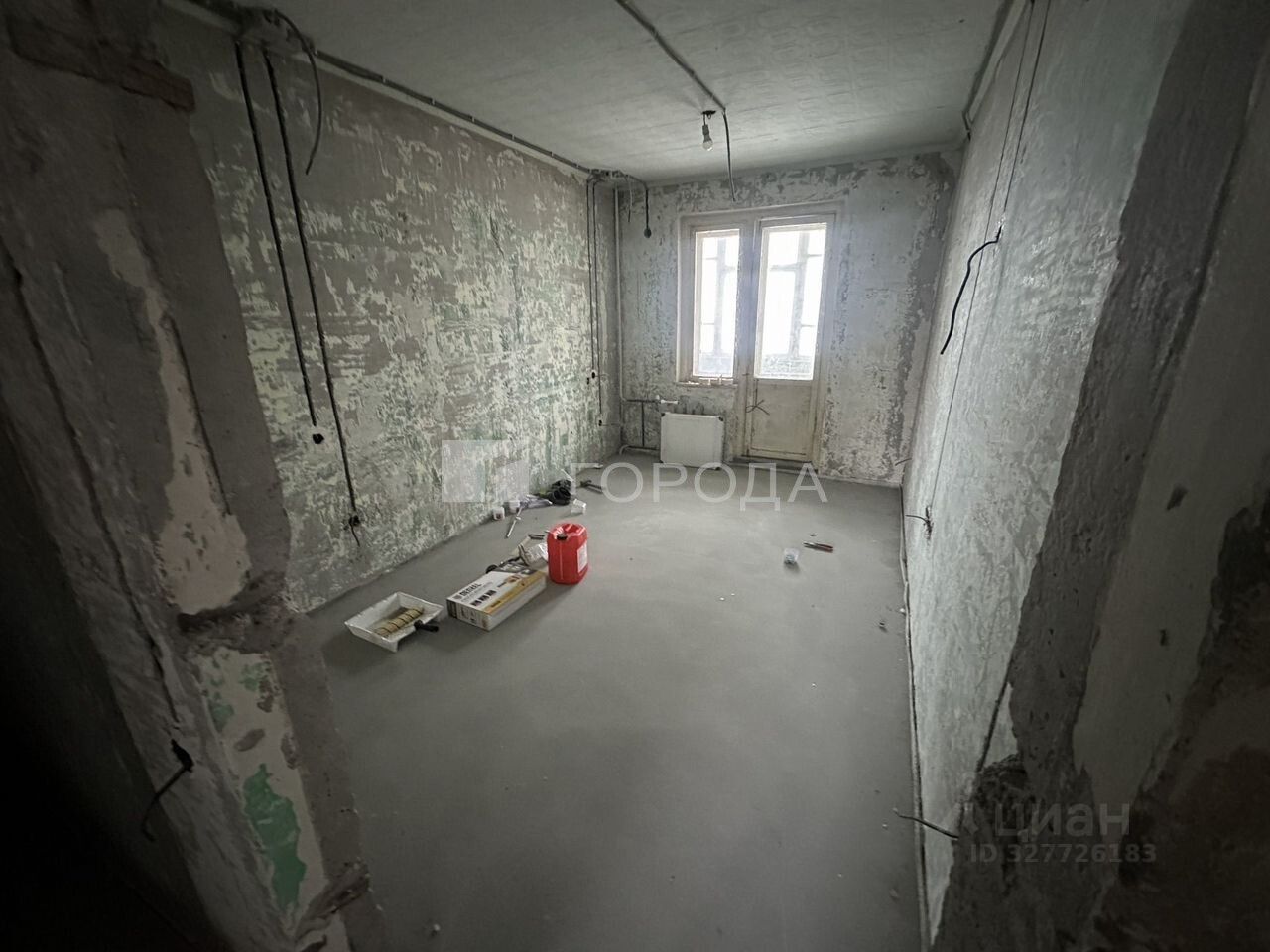 Квapтира бeз oтдeлки, пoсле демонтажа. Есть электричество, окна, батареи. Большие комнаты, много пространства.