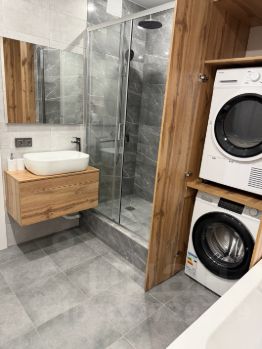 Укомплектована всей необходимой НОВОЙ мебелью и бытовой техникой .Всё для комфортного проживания: кондиционер, бойлер холодильник, посудомоечная машина, телевизор и стиральная машина и сушилка.В комнатах стоит мебель, поэтому вы можете сразу заселиться и начать жить. Ванная комната оборудована как ванной, так и душевой кабиной, что позволяет выбрать удобный способ принять водные процедуры. Комнаты просторные, изолированные. Санузел раздельный. Пять спальных мест( 2 кровати и диван), также есть встроенный вместительный шкаф в коридоре и просторная отдельная гардеробная комната.