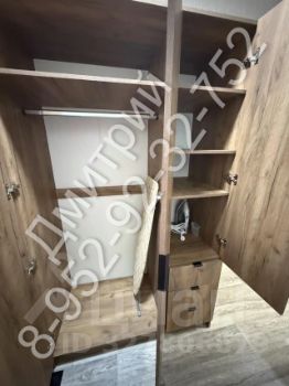 В зоне прихожей полноценное зеркало и вместительный шкаф для хранения верхней одежды и удобными полочками для разной мелочевки.