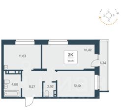 60,75 м²