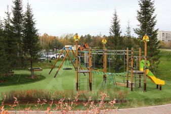 Имеет придомовую территорию с прекрасно оформленным ландшафтным дизайном, подземной парковкой, спортивными и детскими площадками, расположенными в закрытом внутреннем дворе.
