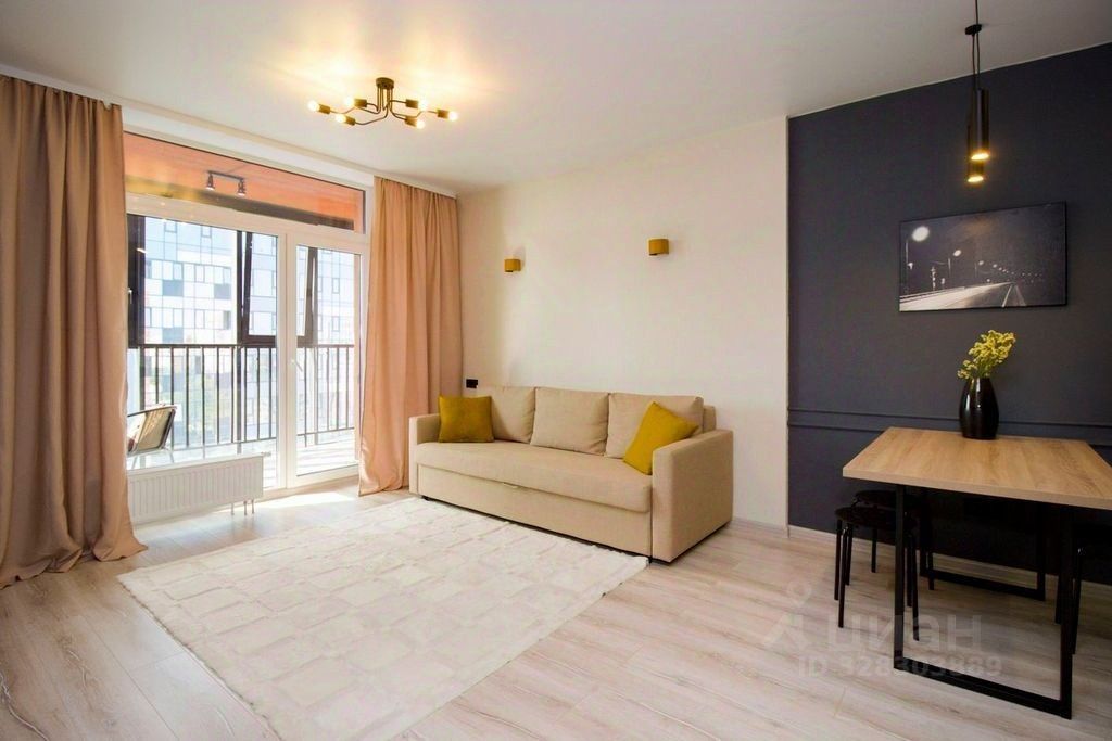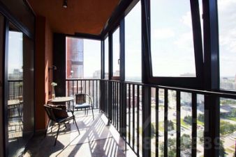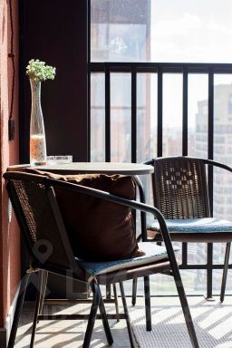 Панорамные окна в пол, грамотная планировка, уголок для отдыха на балконе.